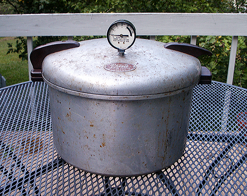 Place the lid in place and make sure it is in the lock position; follow the instructions for your particular pressure bottler. Turn the burner on high and allow the water in the pressure bottler to come to a full steam. Let the pressure bottler vent for about 10 minutes to make sure the bottler is full of steam. I watch for a steady constant full vent of steam for several minutes but I caution my readers to follow the instructions that come with their particular bottler. When you are venting a steady steam for the recommended amount of time, using an oven mitt quickly close the vent, or place the vent cap into position.